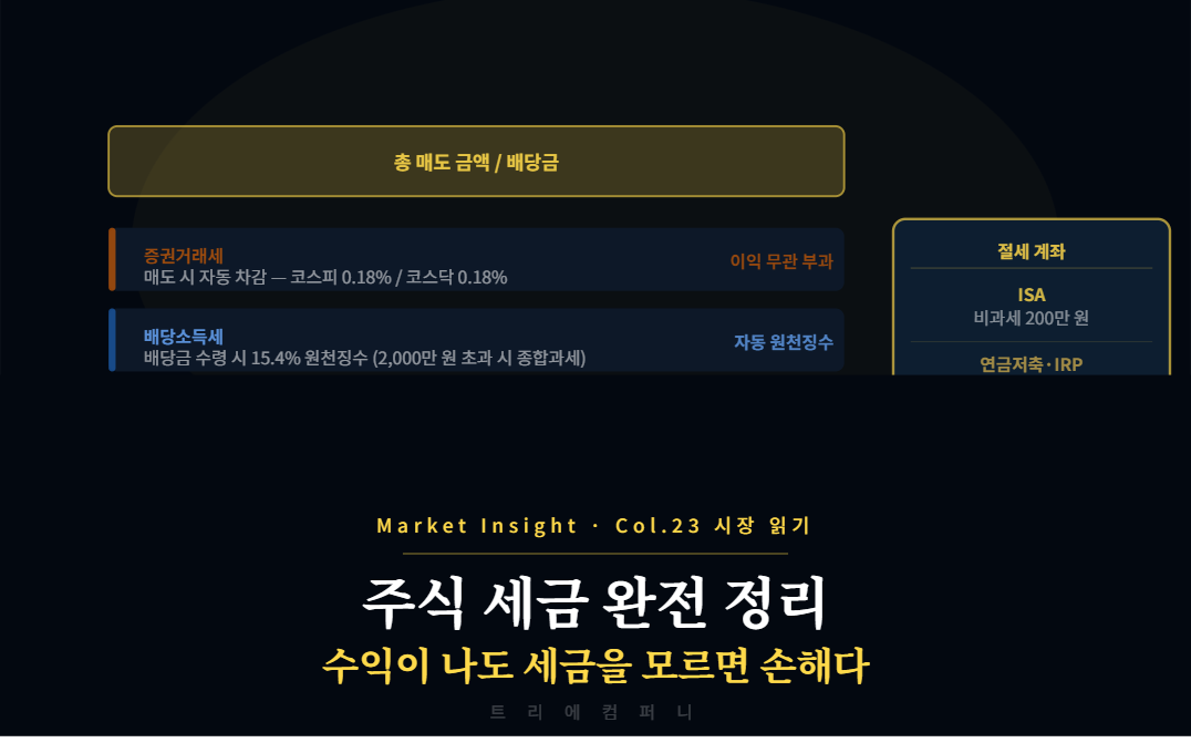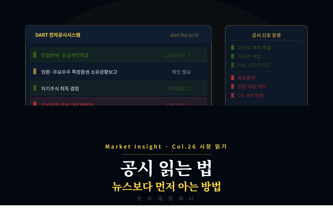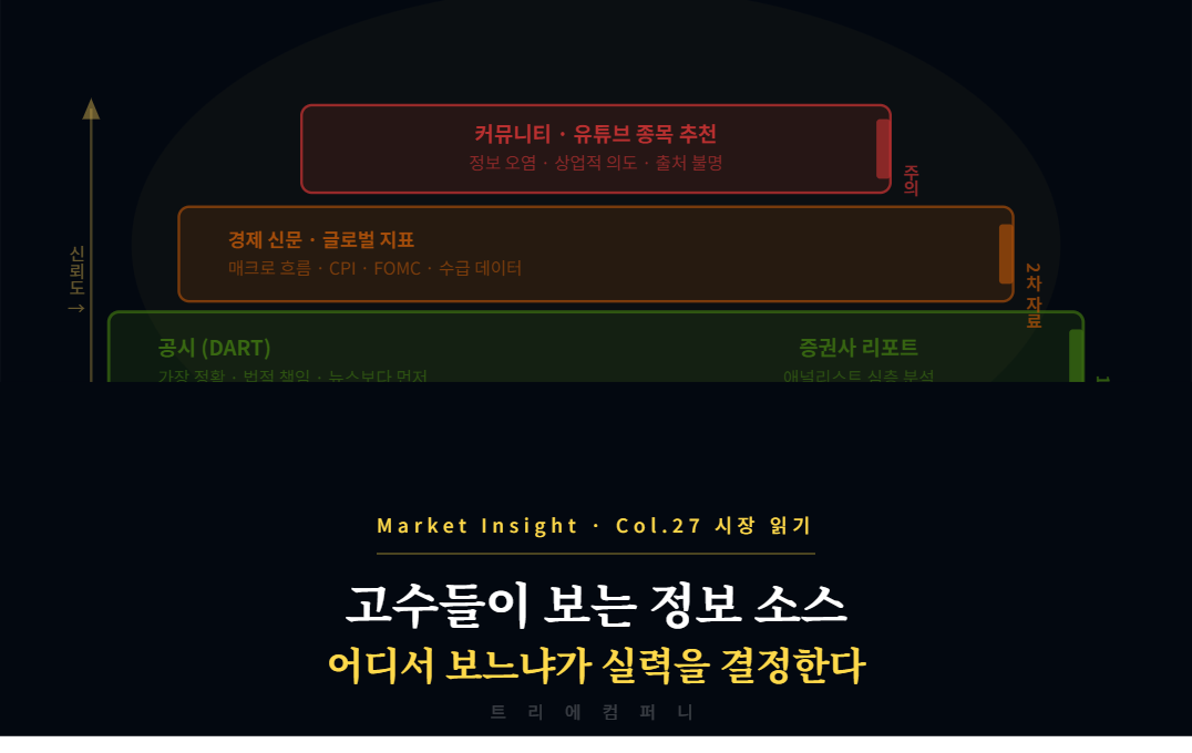 Market Insight · Col.30 시장 읽기1년 후 수익률을 바꾸는 습관지식보다 습관이 수익률을 결정한다. 꾸준히 실천하는 투자자가 결국 이기는 이유와 그 습관들트리에컴퍼니 Market Insight — 시장 칼럼 읽는 시간 약 5분1년 후 수익률을 바꾸는 것은 특별한 종목이나 비밀 정보가 아닙니다. 같은 정보를 보더라도 매일 실천하는 습관이 다른 투자자와 수익률을 갈라놓습니다. 투자 고수들이 공통적으로 가진 것은 화려한 분석 능력이 아니라, 단순한 루틴을 오랫동안 꾸준히 반복하는 능력입니다."투자에서 재능은 10%이고 습관이 90%다.꾸준한 사람이 결국 이긴다."단기 수익은 운이 결정하지만, 5년 이상의 장기 수익률은 습관이 결정한다. 지금 당장 시작하는 작은 습관이 5년 후를 바꾼다.✦수익률..